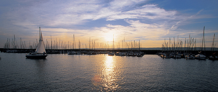 Seehotel Rust Abendstimmung Hafen