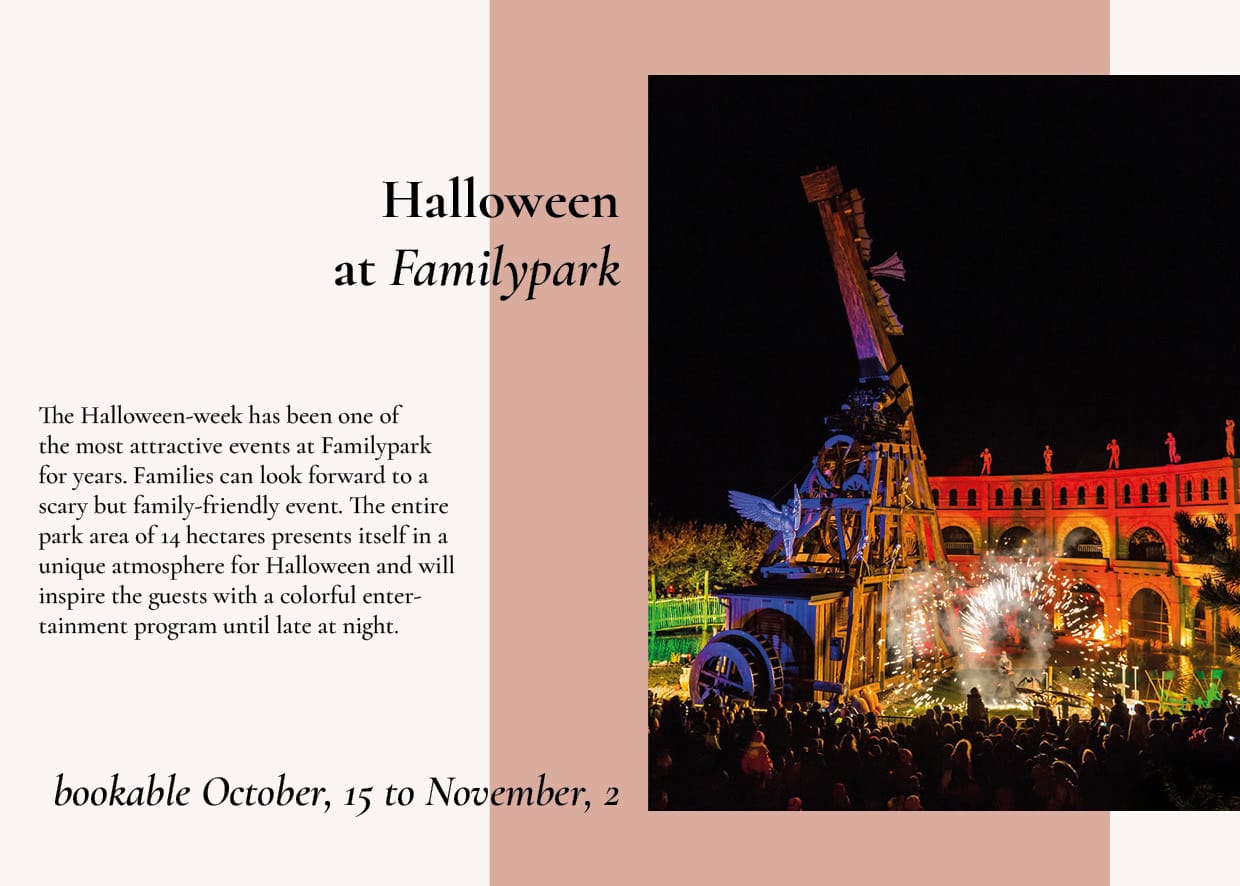 *) Show tickets are not included; please book them directly via the Familypark website. Please also note the opening hours and closing days!